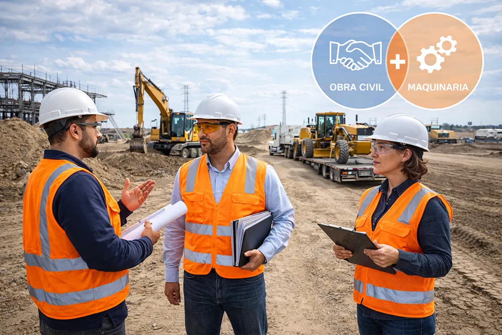 Maquinaria pesada disponible por jornada, mes o proyecto, con opción de operador certificado.