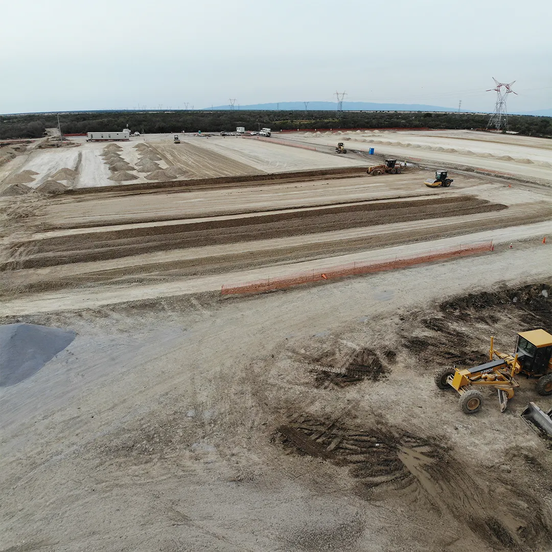Infraestructura para operación industrial: plataformas, accesos y patios.